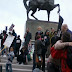 A group was chanting about taking the street. Some whackos were making chalk drawings at the feet of the police. (I thought: They probably think of themselves as "peaceful," when in fact, they were so disrespectful.) Meanwhile, an intense man seemed to be hallucinating and kept screaming at the police that they were the Syrian army. He was really scary. In short, it was time to get these people off the streets and up onto the sidewalk. Once the order was issued, a man, who had previously been ranting and saying he was Jesus Christ, lay down on the street in a crucifixion position, but was finally coaxed up by a friendly man.