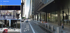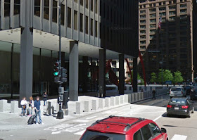 This is the adjacent public plaza, in front of the Post Office.  This plaza lacks protection.  This is where many protest rallies are held in Chicago.  Maybe barriers should be erected?  If you hold a protest here, be aware of the dangerous layout.